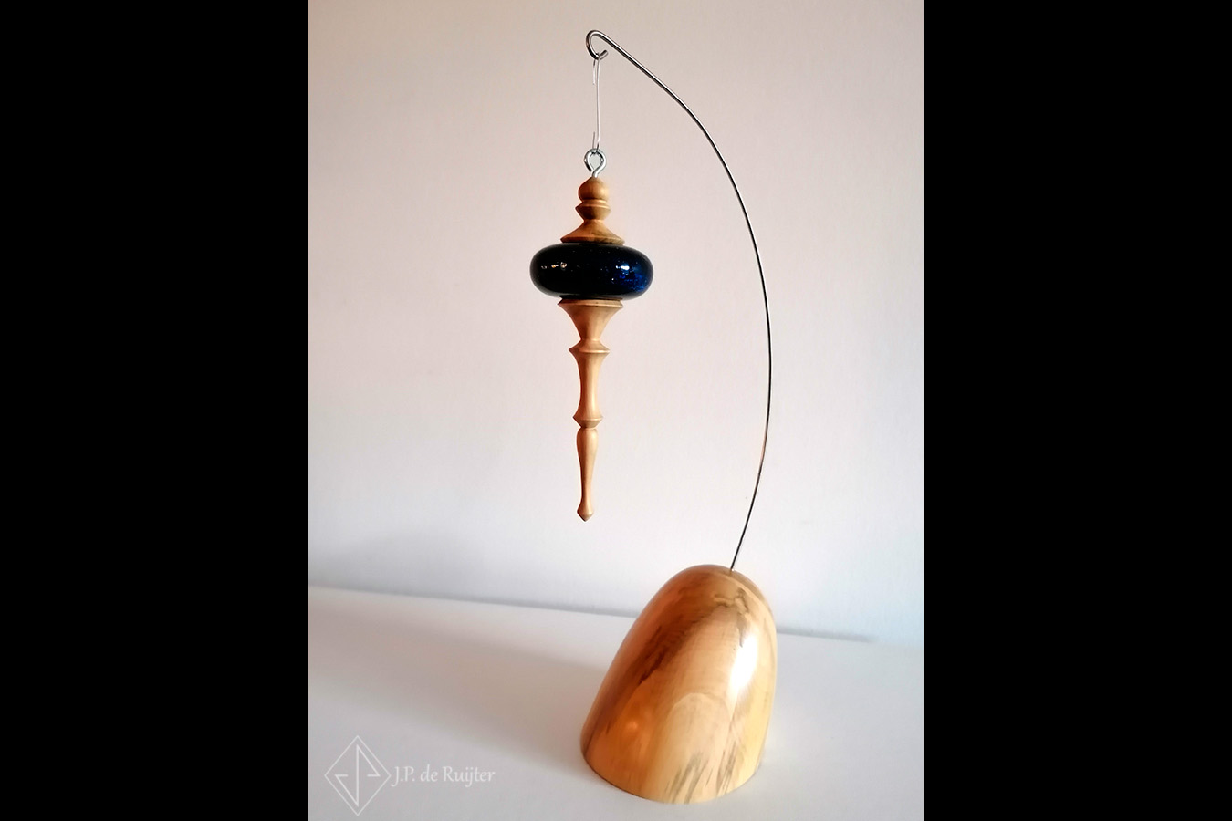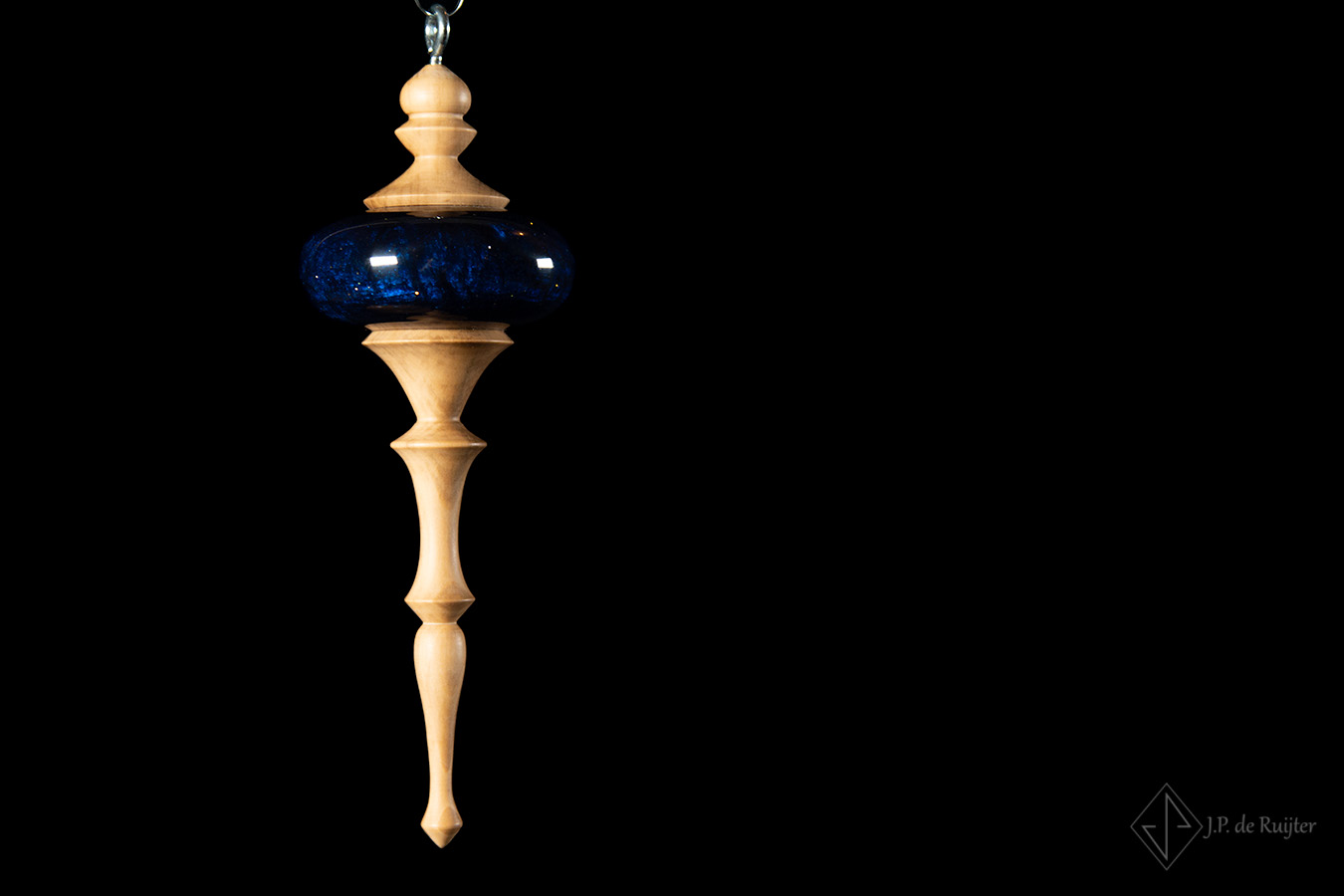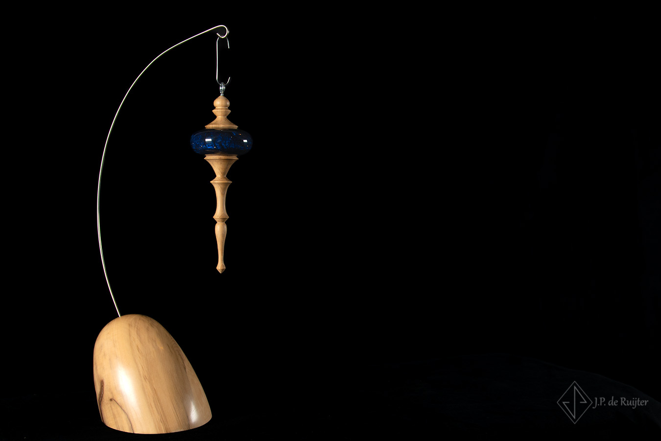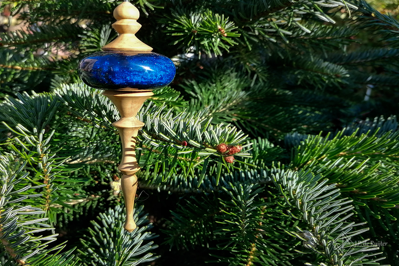 Uit buxus hout fijn sier houtdraaiwerk met een ovale bol van kunstglas in blauw met goud spikels, exclusief kerst ornament. Onze ornamenten zijn altijd slecht een van gemaakt, maar deze van buxus hout is zeldzaam en ga je niet zomaar weer vinden. Verkrijbaar samen met de evenzo unieke standaard van buxus hout, vraag hierna bij intresse. Buxus hout is vrijwel niet meer te verkrijgen vanwege het veelvuldig rooien van buxus na de motten plaag, en word er ook vrijwel geen nieuwe buxus mee aangeplant.