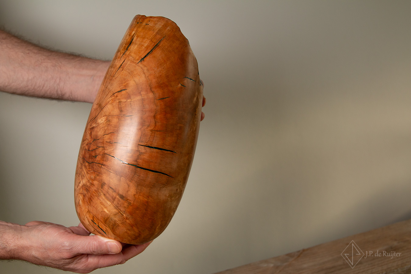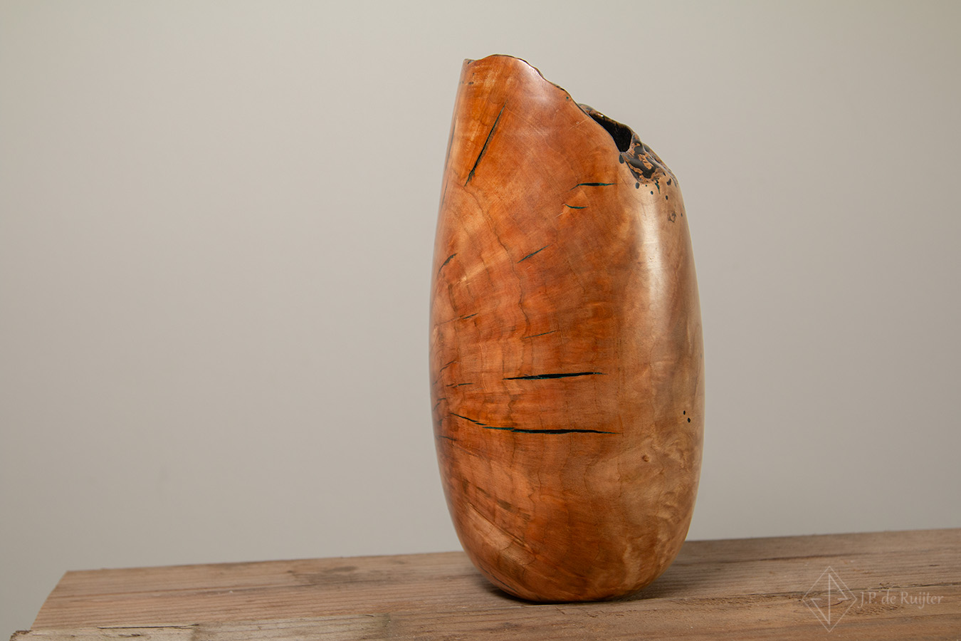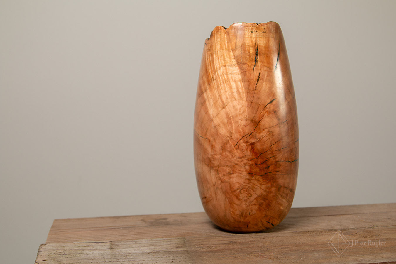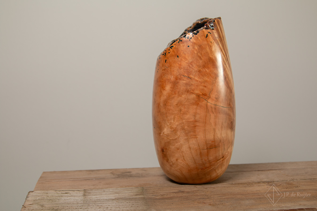 Deze vaas is gedraaid uit beuken hout, zogenaamd warrelknoest, burl genoemd.