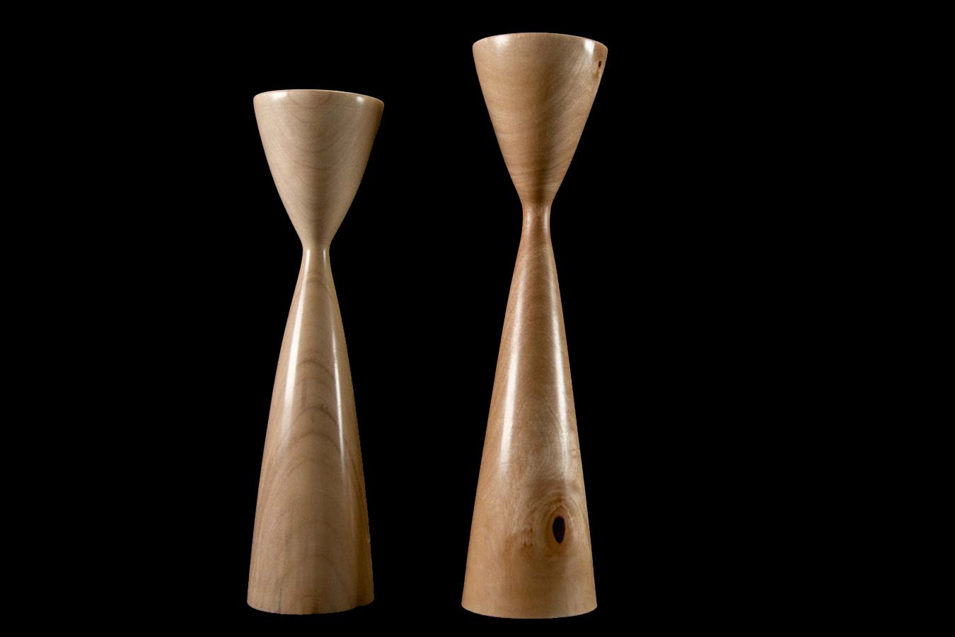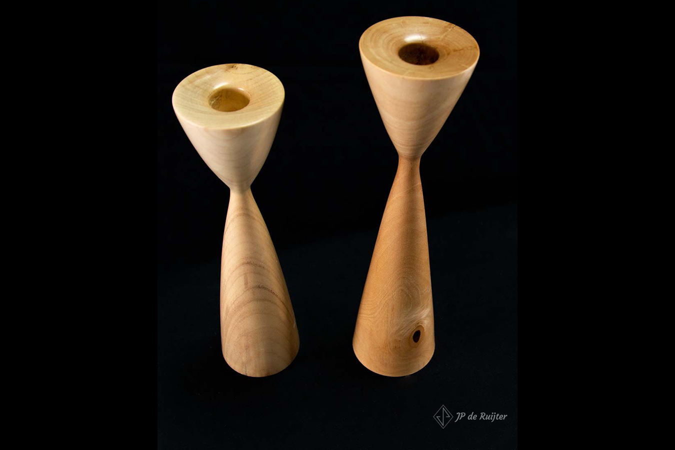 Kaarsenkandelaar van hout. Gedraaid in een strakke vorm, past in elke woonstijl.